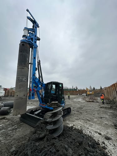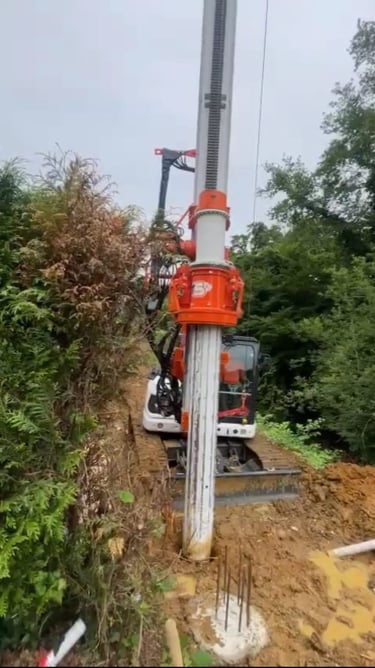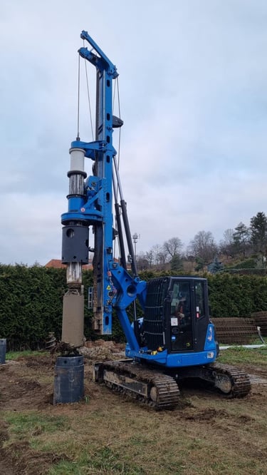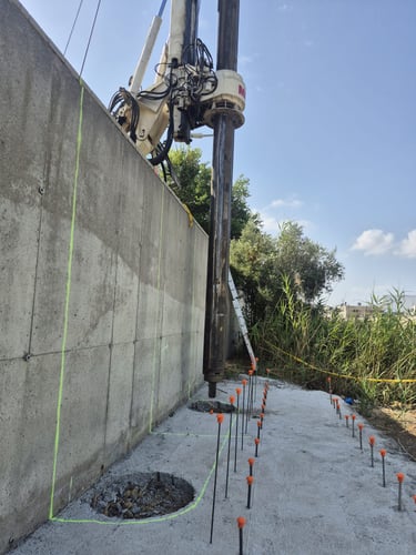 CPI-8: Barrena continua. En este tipo de Pilotes la espiral es hueca y, mediante ésta, se realiza el hormigonado mientras se extrae el terreno. Con diámetros desde 350mm a 550mm con una profundidad máxima de 25m.